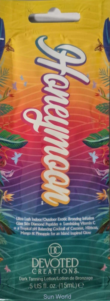 Opalovací krém. Utečte do odlehlého ráje zlatavé pokožky a svůdné elegance s Honeymoon. Díky technologii Liquid Glass získáte svůdný, „airbrush“ efekt a tropický pH-balancující koktejl pomáhá pokožce zůstat vyvážená, jemná a políbená sluncem. Diamantové peptidy odrážejí světlo, čímž vytvářejí viditelně pevnější, rozostřený a skleněně zářivý vzhled, který patří do ráje plného razítek v pase. Obohacen o malinové ketony pro sytější a déletrvající barvu a zlatý vitamin C, který pokožku rozjasňuje a zjemňuje. Honeymoon tak vytváří žádoucí, zářivý finiš – od východu slunce až po svůdnou noc. Pokud toužíte po soukromé barvě, podmanivém jasu a hebké tropické pokožce zarezervujte si svou záři s Devoted Creations Honeymoon.